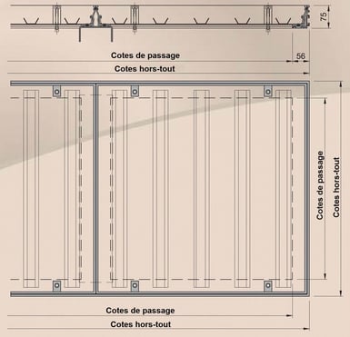 • Cotes hors-tout = taille nominale + 112mm, hauteur: 75mm, évidure de 62mm