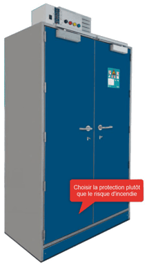 - Armoire de sécurité résistante au feu, spécialement conçue pour le stockage et la recharge des batteries lithium-ion.