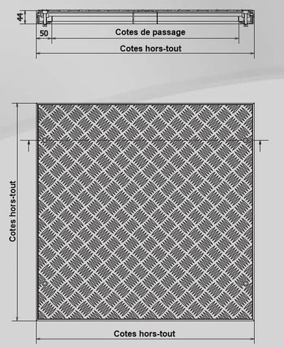 - Le cadre est bétonné à fleur de sol. Le couvercle est faite d'une plaque striée en aluminium antidérapante